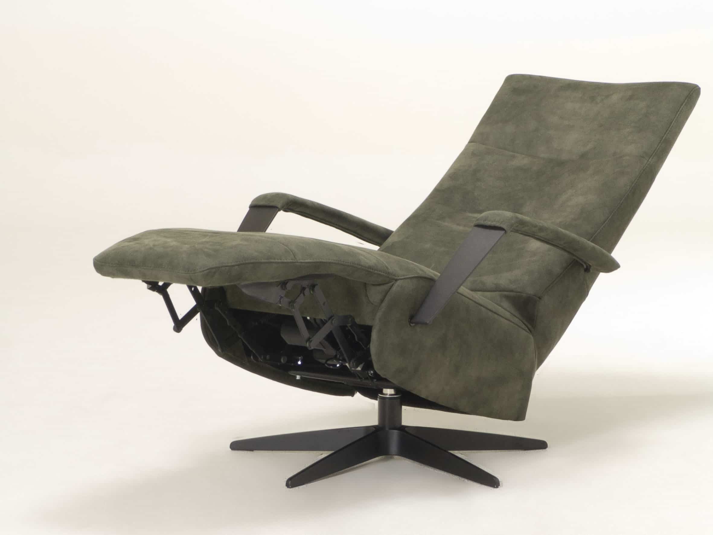 De uitklapbare voetensteun en de verstelbare rugleuning zijn onafhankelijk van elkaar te bedienen. Bij het uitklappen van de voetensteun komen zitting en rugleuning in een iets meer achteroverhellende positie waardoor een uitermate comfortabele zithouding bereikt wordt. Het verstellen van de rugleuning is mogelijk zonder de voetensteun uit te klappen. Ook kan de rugleuning in elke positie worden gebracht nadat de voetensteun is uitgeklapt. Het bovenste deel van de rugleuning, waar het hoofd tegen rust, kan van achter naar voor worden versteld (topswing) waardoor het hoofd in elke positie aangenaam wordt ondersteund.