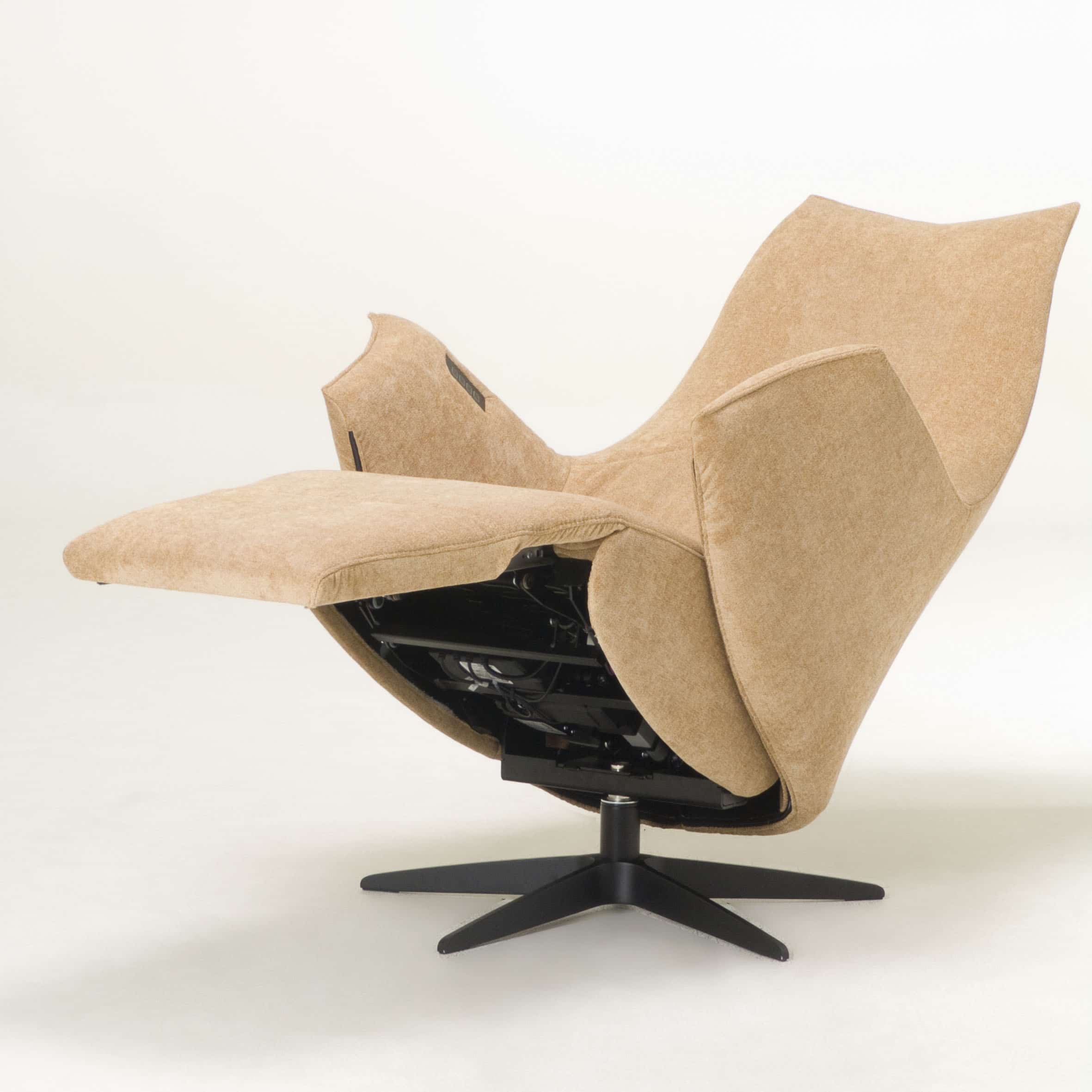 Een Twice relaxfauteuil wordt standaard geleverd met elektrische bediening d.m.v. drie motoren; één voor de rugleuning, één voor de voetklep en één om de zitting en voetklep in “hart-balans” stand te bewegen. Deze zgn. “hart-balans” functie houdt in dat voeten en het hart in een denkbeelding horizontale lijn liggen. Hierdoor wordt het hart minimaal belast wat als zeer rustgevend wordt ervaren. Je kunt ook de zitting zonder het gebruik van de voetensteun kantelen. Hierbij kantelt de rug met de zitting mee.