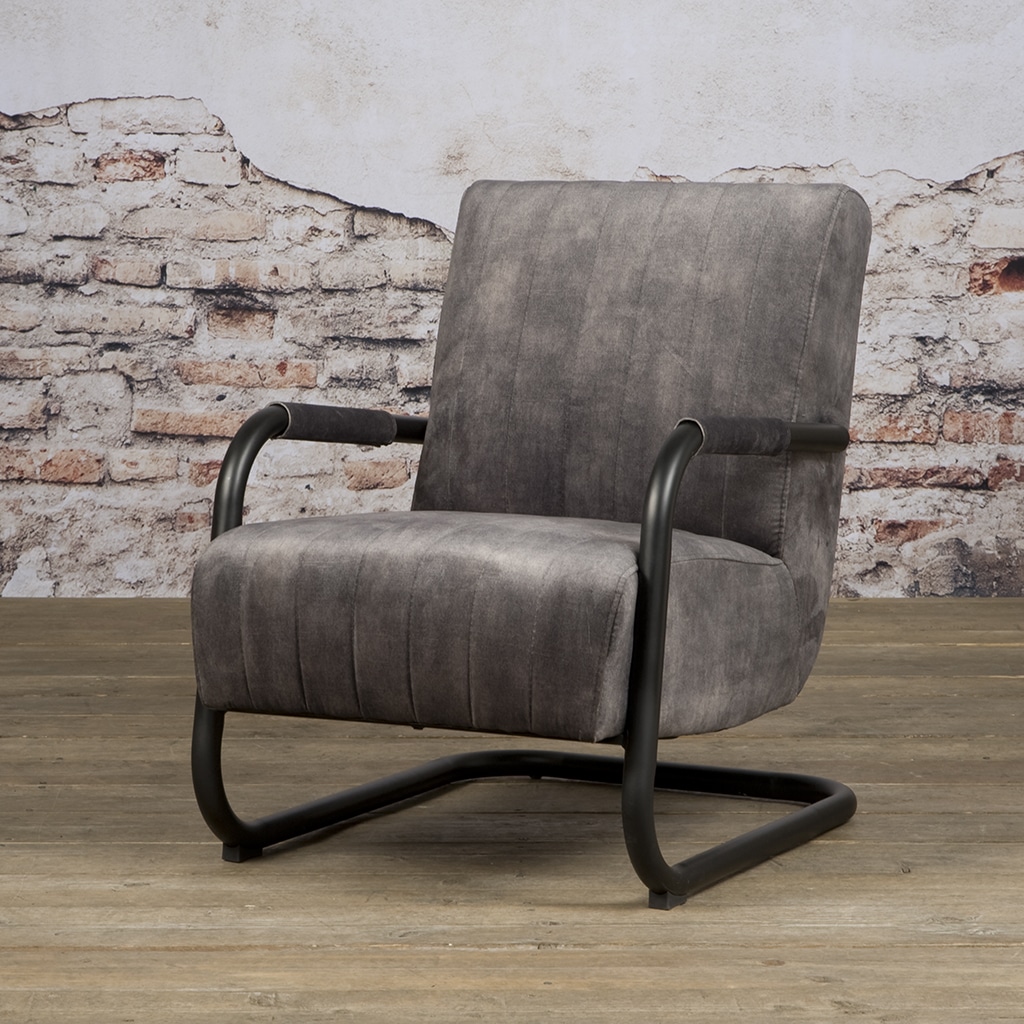 De industriële fauteuil Riva met armleuningen van Tower Living is stoer, functioneel en met een sterk en zelfverzekerd karakter. Industrieel staat voor een stoer en robuust design, soms met een heuse vintage look. De truc zit hem in het maken van de juiste combinaties en de kwaliteit van de materialen die gebruikt zijn. Uitgevoerd in de kleur antraciet velvet stof en metalen poten.