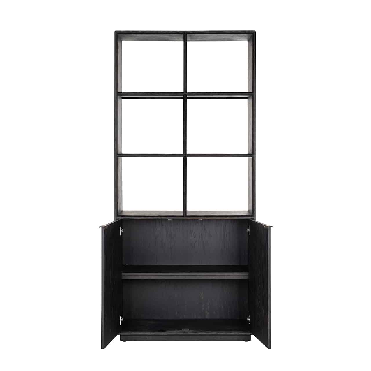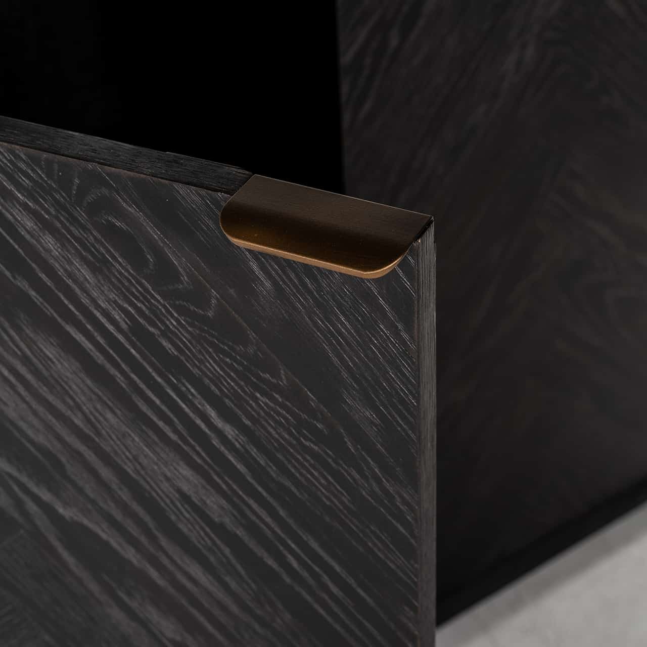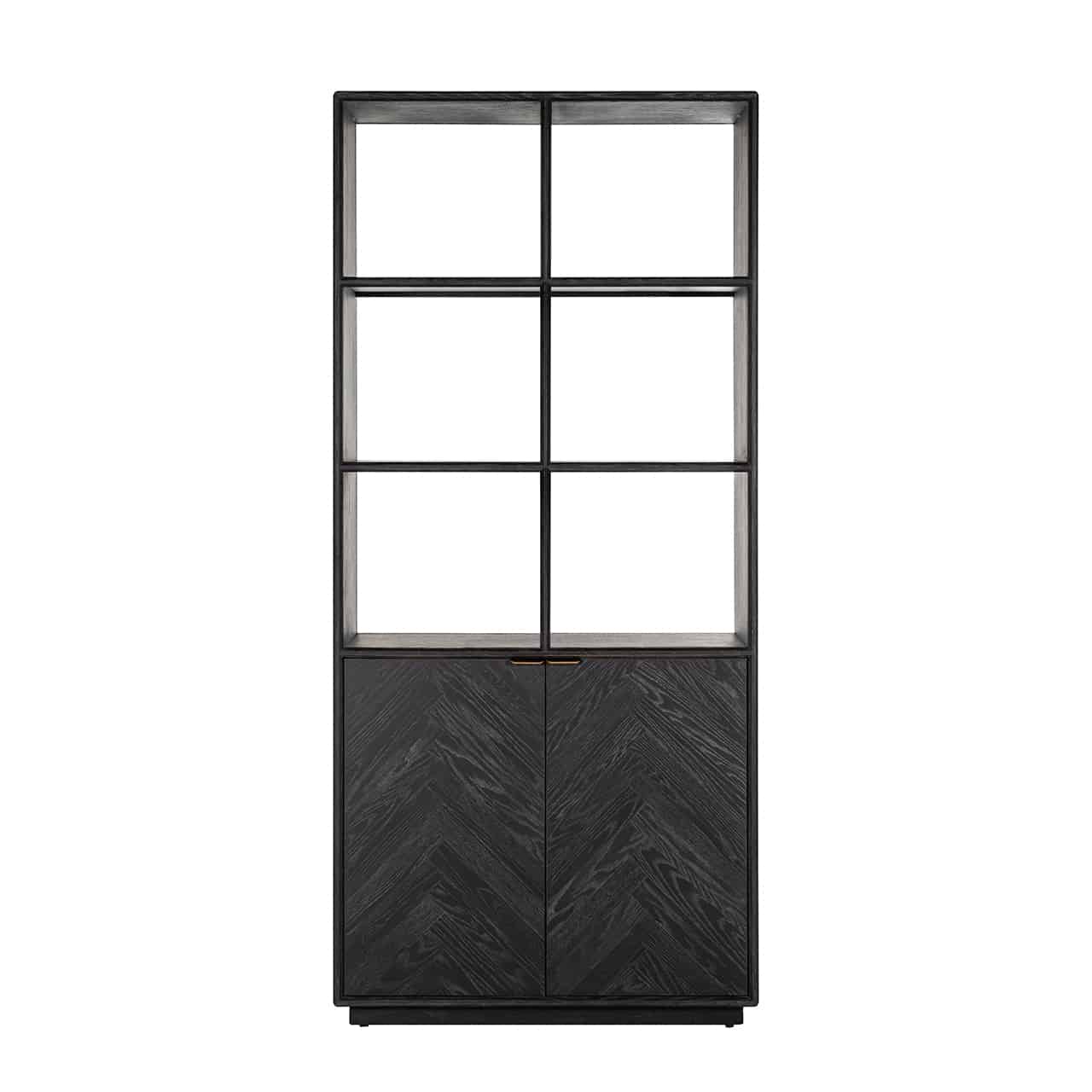 Richmond Interiors creëert stijlvolle meubelen en accessoires die net zo uniek zijn als jij. Elke collectie staat garant voor een moderne uitstraling met een chique touch. Zwart gebeitst rustiek eiken fineer waarvan de delen in visgraatpatroon zijn geplaatst, markeert de Blackbone Brass-collectie. De metalen kaders van boekenkast Blackbone Brass zijn afgewerkt in een verfijnde messingkleur.