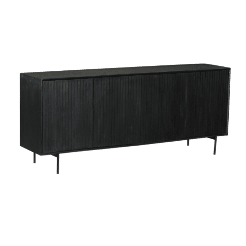 €1.029,00Dressoir ‘Madison’ is gemaakt van mangohout. Het metalen frame is afgewerkt met een zwarte lak. Dit model is voorzien van vier deuren. De deuren zijn voorzien van een verticaal lattenpatroon en is afgewerkt met een zwarte lak.