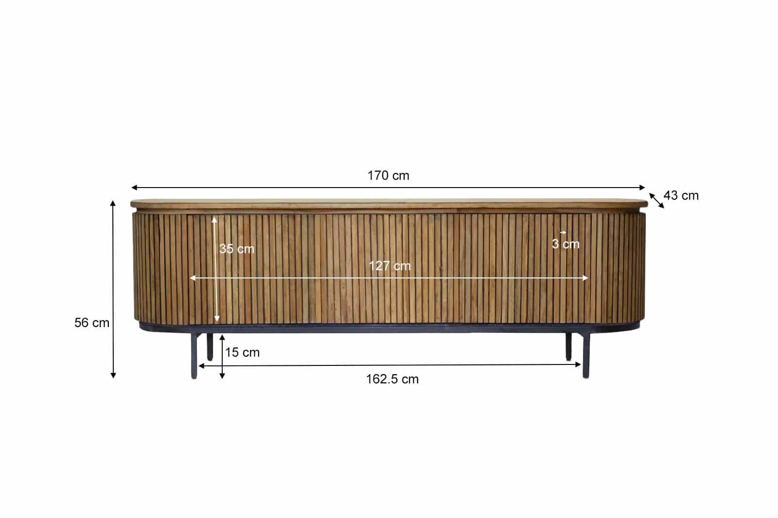 €999,00Ontdek de verfijnde elegantie van de kasten uit de Lausanne collectie van Livingfurn, een luxueuze kastenlijn vervaardigd uit duurzaam teakhout en voorzien van een slank zwart stalen onderstel. Kenmerkend voor deze collectie is de ovale vorm en het lijnenspel, gecombineerd met de natuurlijke uitstraling van het teakhout en de greeploze deuren die naadloos opgaan in het ontwerp. Deze strakke afwerking zorgt voor een minimalistische look waarbij de natuurlijke schoonheid van het teakhout volledig tot zijn recht komt.
