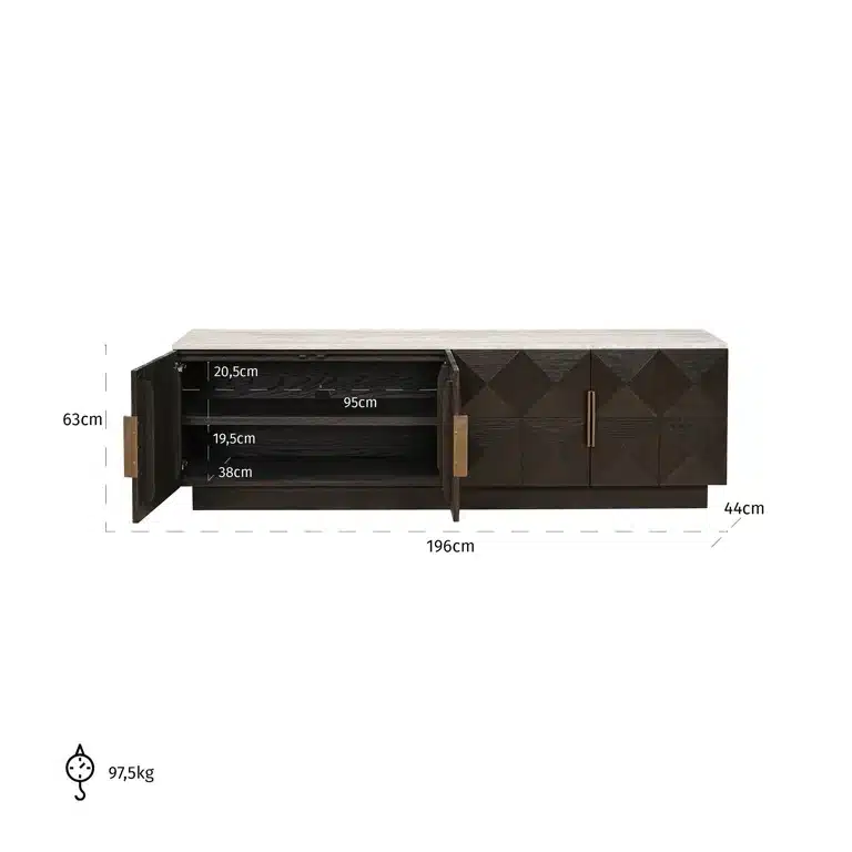 Richmond Interiors tv meubel Claremont 196x44x63 cm eiken