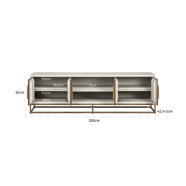 Richmond Interiors tv meubel Whitebone brass 200×44,5×61 cm eiken
