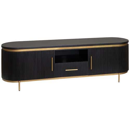 Ontdek de elegantie van de Tower Living Rivello meubelserie, exclusief verkrijgbaar bij Meubelcity. Deze meubelserie is uniek vanwege de prachtige ronde vormen en de subtiele matgouden accenten. Met zijn geribbelde zijkant en verfijnde matgouden handgrepen straalt het Rivello tv-meubel een stijlvolle allure uit die je interieur direct naar een hoger niveau tilt.