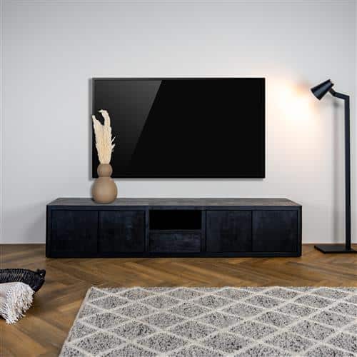 Black Beauty! Dat is Tenna, een collectie gemaakt van volledig licht geborsteld massief mango hout. Door zijn eenvoud altijd makkelijk te combineren. De hoeken zijn afgerond en zorgen ervoor dat de Tenna kasten helemaal in de stijl van nu passen. De deuren hebben een push-to-open systeem, dus een greep is niet nodig. De kasten zijn zo ontworpen dat ze geen poten hebben, maar een bijna onzichtbare plint met verstelbare vloerdoppen, maar deze tv meubels kunnen ook hangend worden gemonteerd!