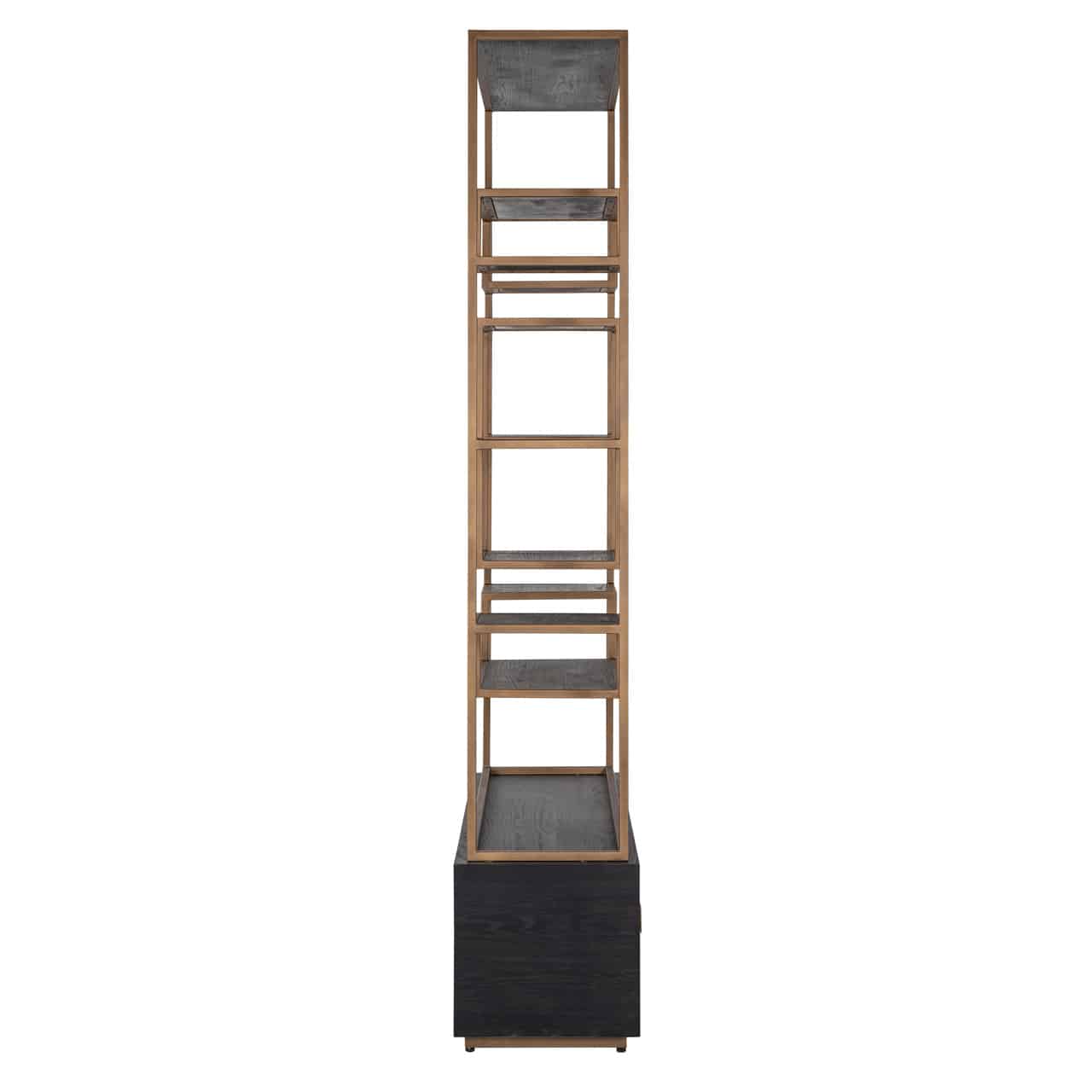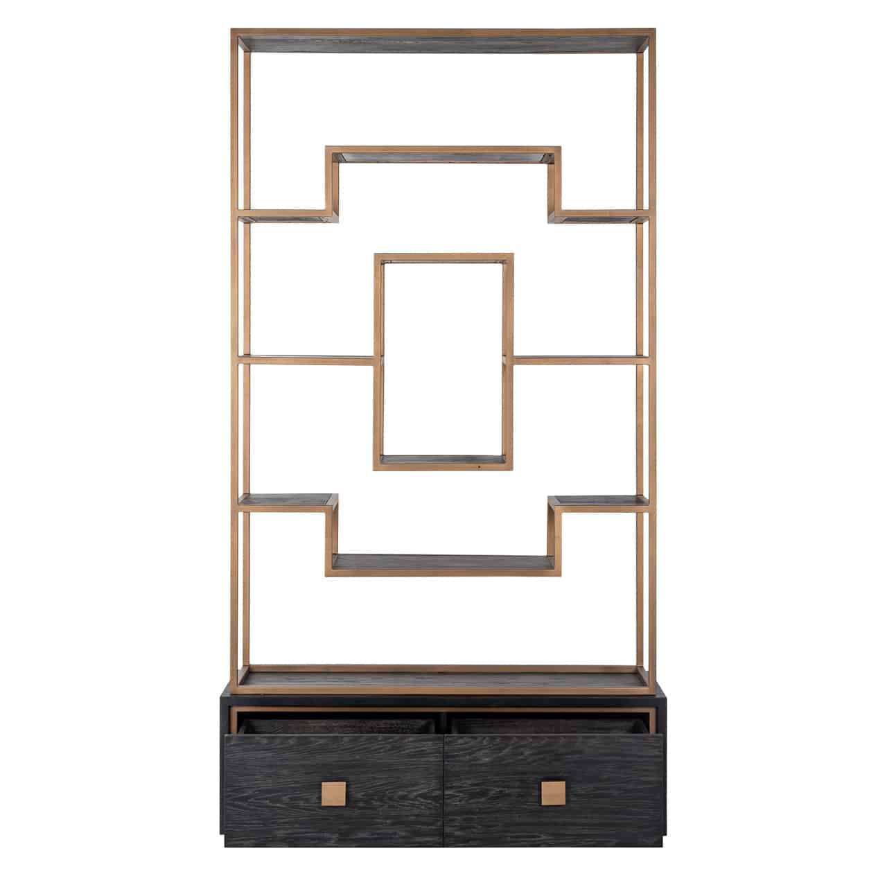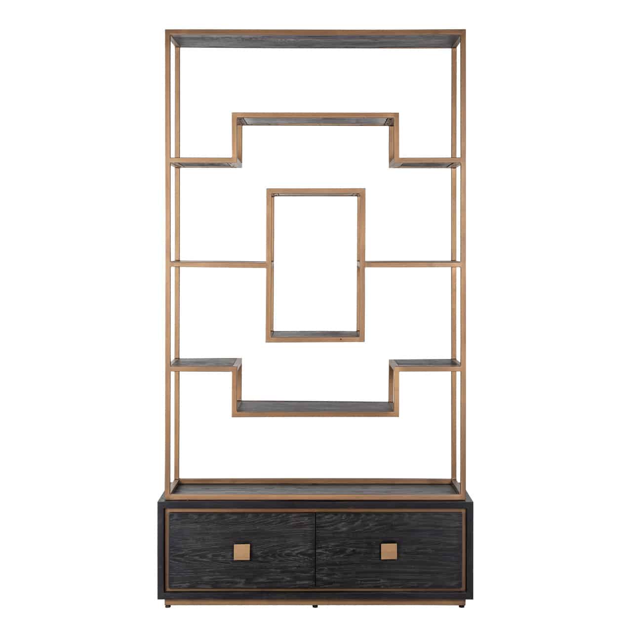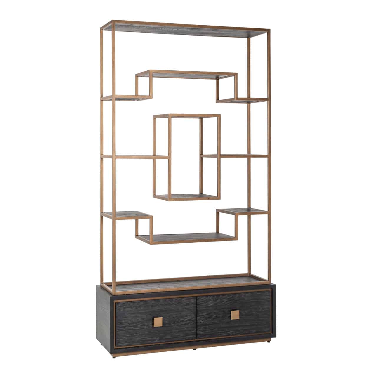 Richmond Interiors creëert stijlvolle meubelen en accessoires die net zo uniek zijn als jij. Elke collectie staat garant voor een moderne uitstraling met een chique touch. Hunter is een unieke collectie met geometrische vormen in zwart eiken fineer. Wandkast Hunter is gecombineerd met RVS onderstellen en details zoals handgrepen in een subtiele messing kleur.