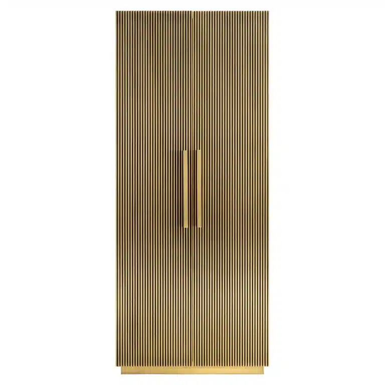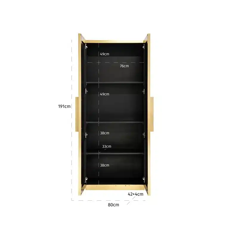 Richmond Interiors creëert stijlvolle meubelen en accessoires die net zo uniek zijn als jij. Elke collectie staat garant voor een moderne uitstraling met een chique touch. Wandkast Ironville heeft een warme, messingkleurige en luxe uitstraling look dankzij de strakke elementen in combinatie met de ribbels. Het messing plaatwerk wordt met de hand bekleed.