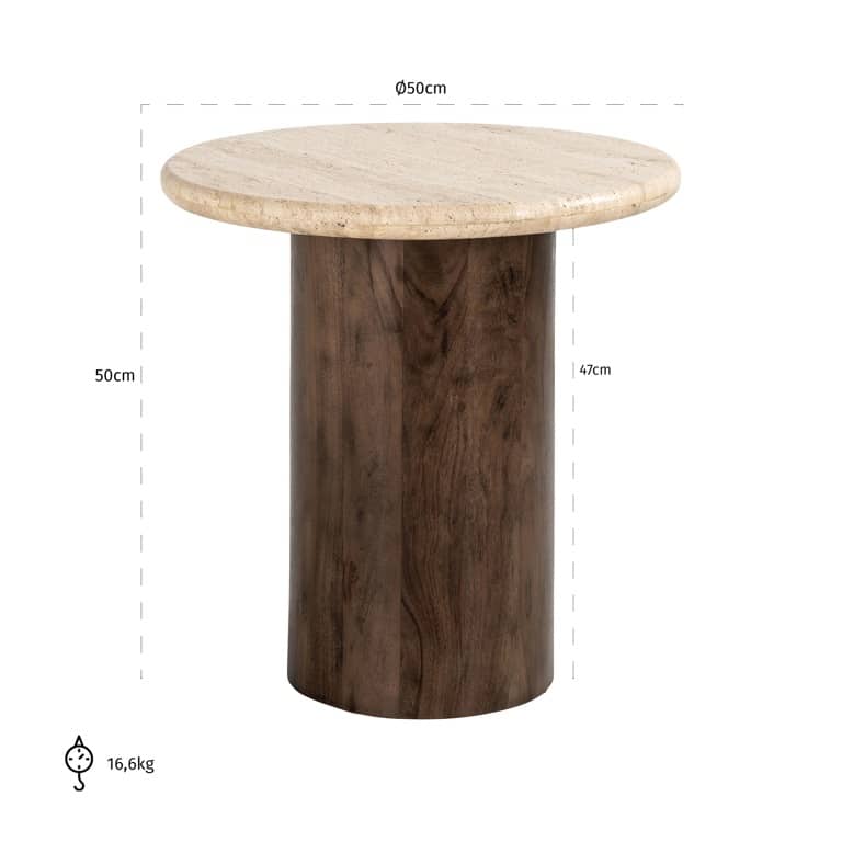 Richmond Interiors bijzettafel Douglas 50x50x50 cm travertin