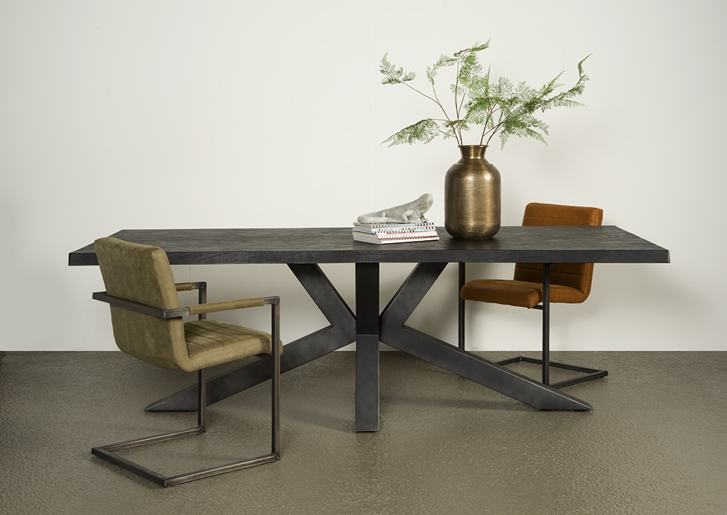 De Tower Living Sovana eetkamertafel is een prachtige unieke boomstamtafel gemaakt van de allerbeste kwaliteit Acacia hout. De robuuste tafel heeft mooie natuurlijke kenmerken en vormen in het hout. Deze kenmerken geven deze boomstamtafel zijn charme. De tafel heeft een spinpoot met verstelbare vloerdoppen en wordt afgelakt met een zijde matlak. De tafel is verkrijgbaar in een naturel en een zwarte kleur. De zwartkleurige tafel is gezandstraald. Door het zandstralen worden de accenten en houtnerven extra benadrukt, maar er worden ook ‘nieuwe’ naden & groeven gerealiseerd. Dit zorgt voor een levendig & stoer tafelblad.