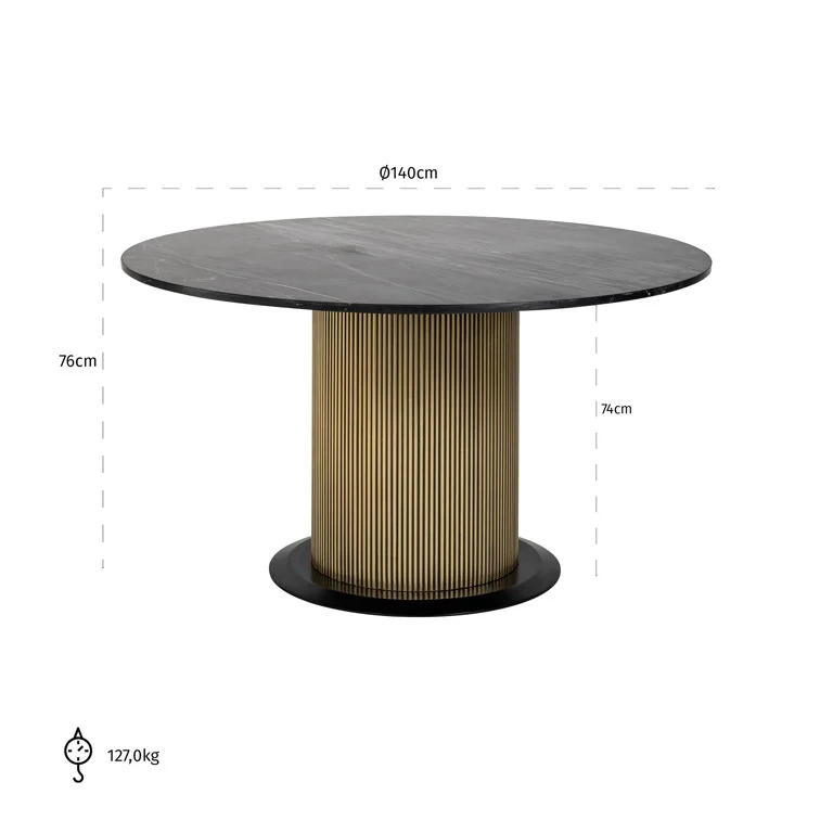 Richmond Interiors eettafel Ironville 140 cm rond marmer