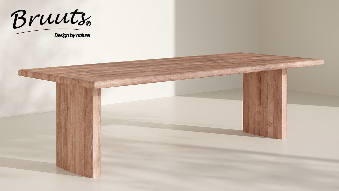 SHOWMODEL UrbanSofa Bruuts eettafel Rechthoek afgeronde rand kolompoot hout afgerond 270 cm Acacia Matt Lacquer