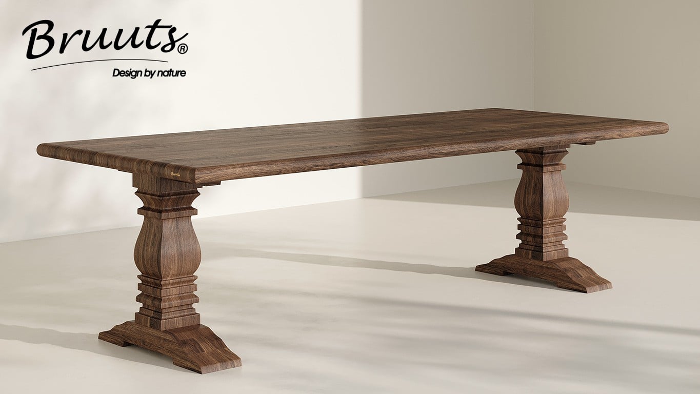 SHOWMODEL UrbanSofa Bruuts eettafel Rechthoek rechte rand kloosterpoot hout 300 cm Acacia Lava