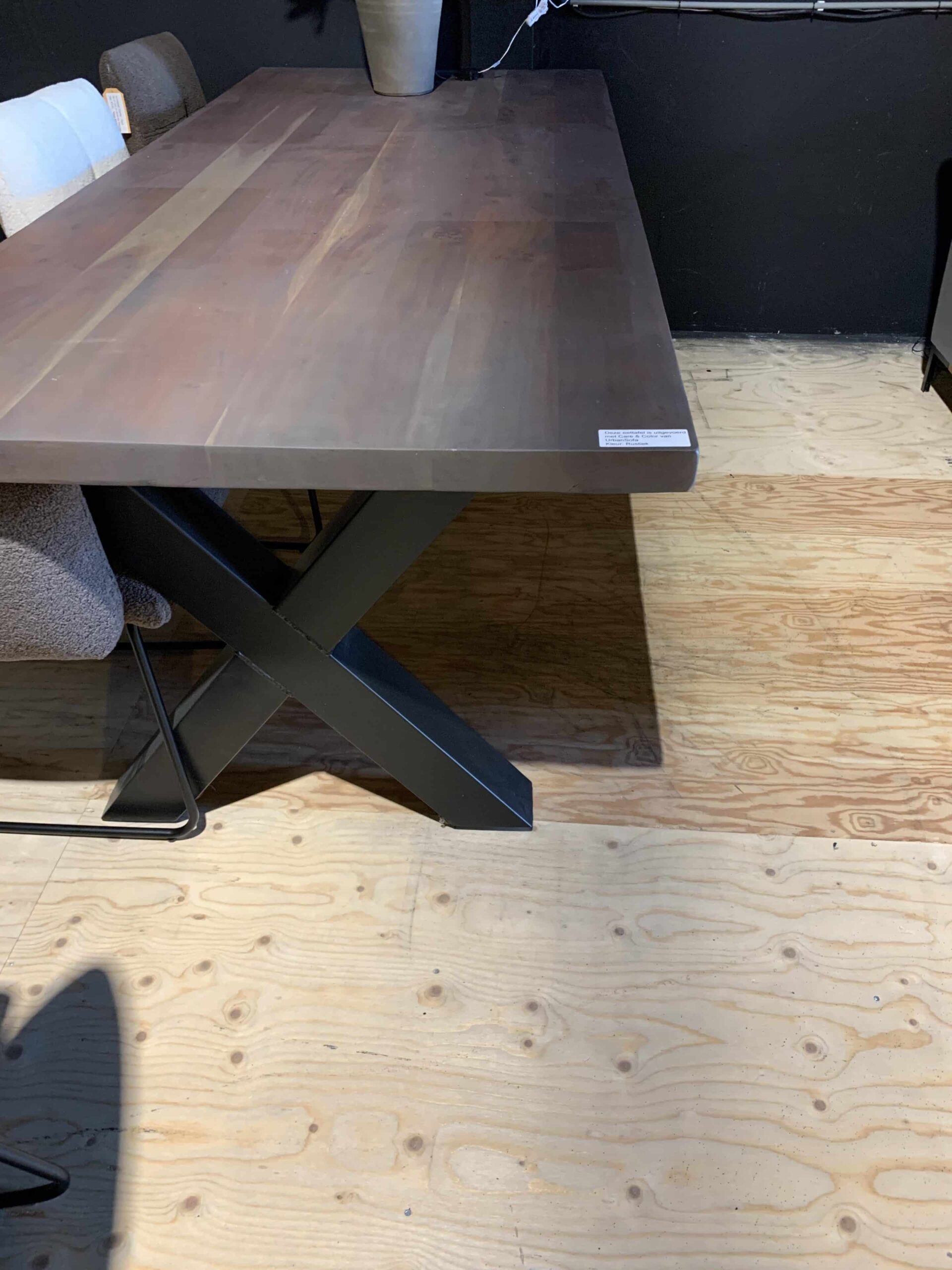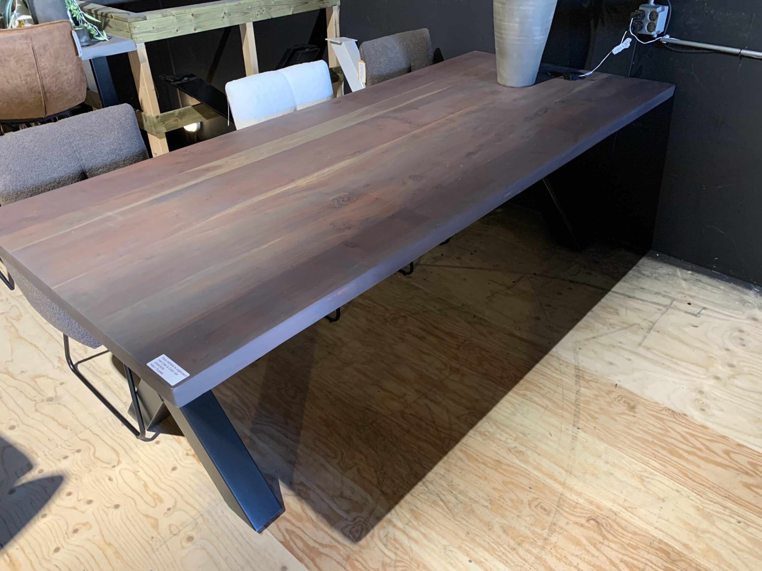 SHOWMODEL UrbanSofa eettafel Rocco 240 cm met X-leg metaal zwart greywash acacia