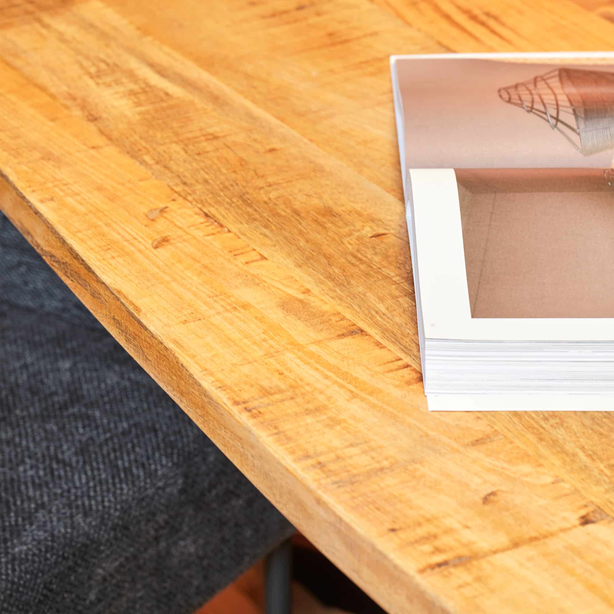 €699,00Eettafel Elegance is gemaakt van mangohout en metaal. Het mangohout is behandeld met een blanke lak. De tafel is voorzien van een metalen matrixpoot, het metaal is afgewerkt met een zwarte lak.