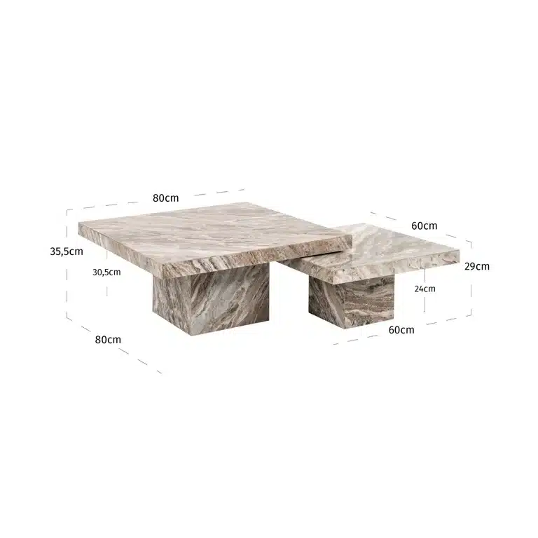 Richmond Interiors salontafel Rashford 80x80x35 cm marmer (Set van 2)