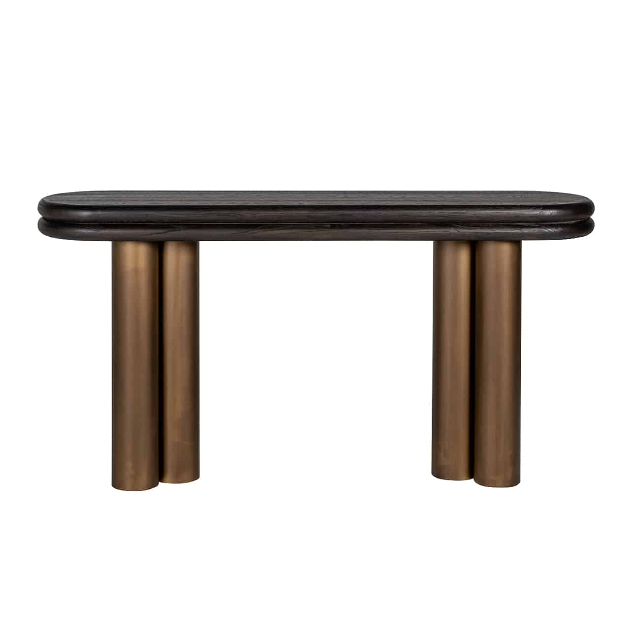 Richmond Interiors creëert stijlvolle meubelen en accessoires die net zo uniek zijn als jij. Elke collectie staat garant voor een moderne uitstraling met een chique touch. Wandtafel Macaron is, zoals de naam al doet vermoeden, geïnspireerd op de heerlijke delicatesse; de macaron. De dubbele eiken rustiek zwarte bladen rusten op stevige (betongevulde) metalen poten, fraai afgewerkt in een bruine kleur.