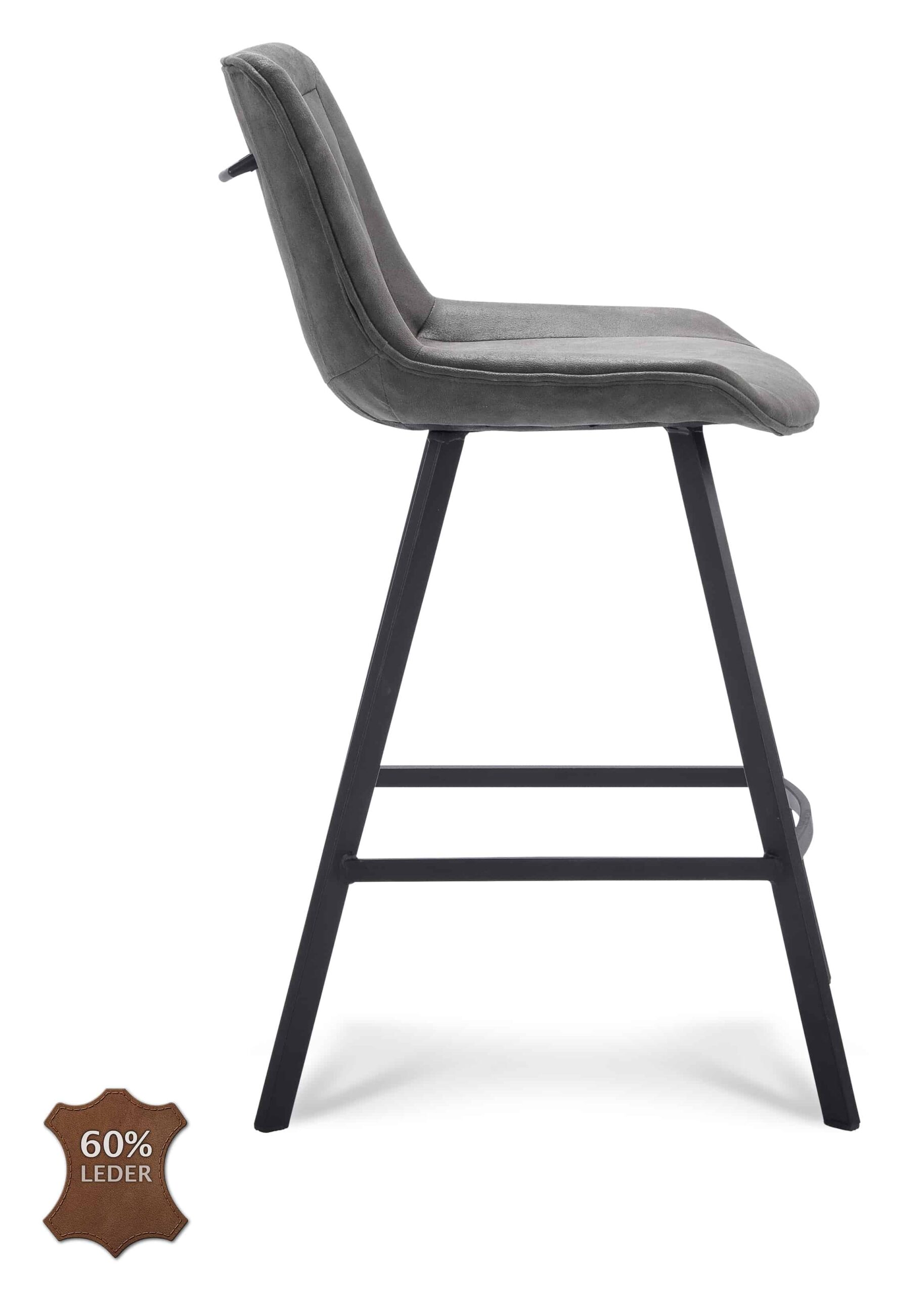 De barstoel is uitgevoerd in een diepe antracietkleur, gemaakt van hoogwaardig microleder. Dit materiaal staat niet alleen bekend om zijn luxe uitstraling, maar ook om zijn duurzaamheid en gemak in onderhoud. Het microleder biedt een comfortabele zitervaring en voegt tegelijkertijd een vleugje elegantie toe aan elke ruimte. Het stevige metalen onderstel biedt niet alleen stabiliteit, maar geeft ook een industrieel tintje aan de barstoel.