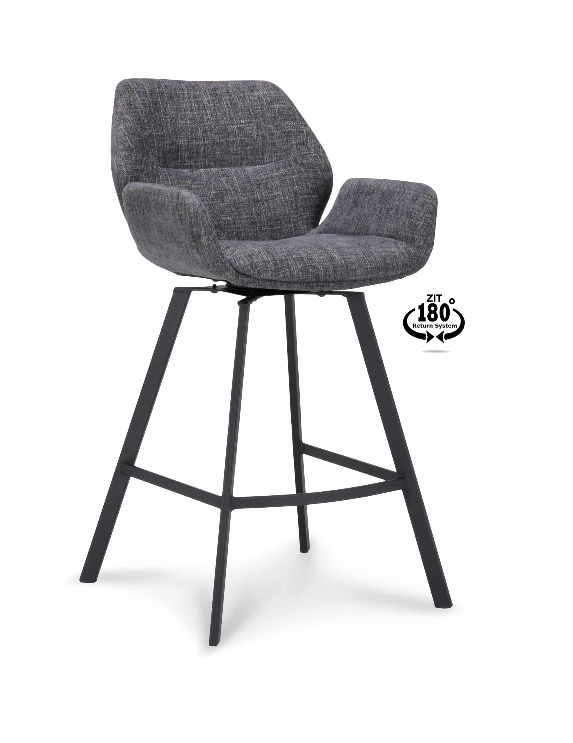 Barstoel Luton draaibaar met arm laag donkergrijs