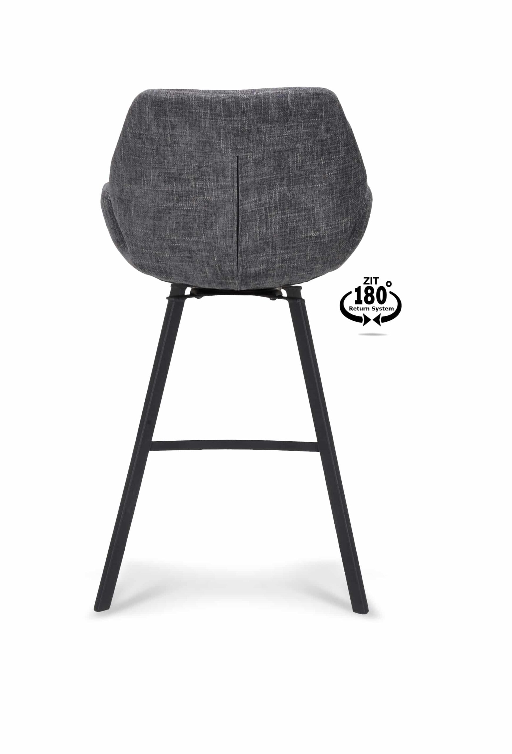 De barstoel is uitgevoerd in een stijlvolle donkergrijze kleur, gemaakt van hoogwaardige stof. Deze keuze van materiaal zorgt niet alleen voor een moderne uitstraling, maar ook voor een comfortabele zitervaring. Het stevige metalen onderstel biedt stabiliteit en draagt bij aan het industriële karakter van de Luton.