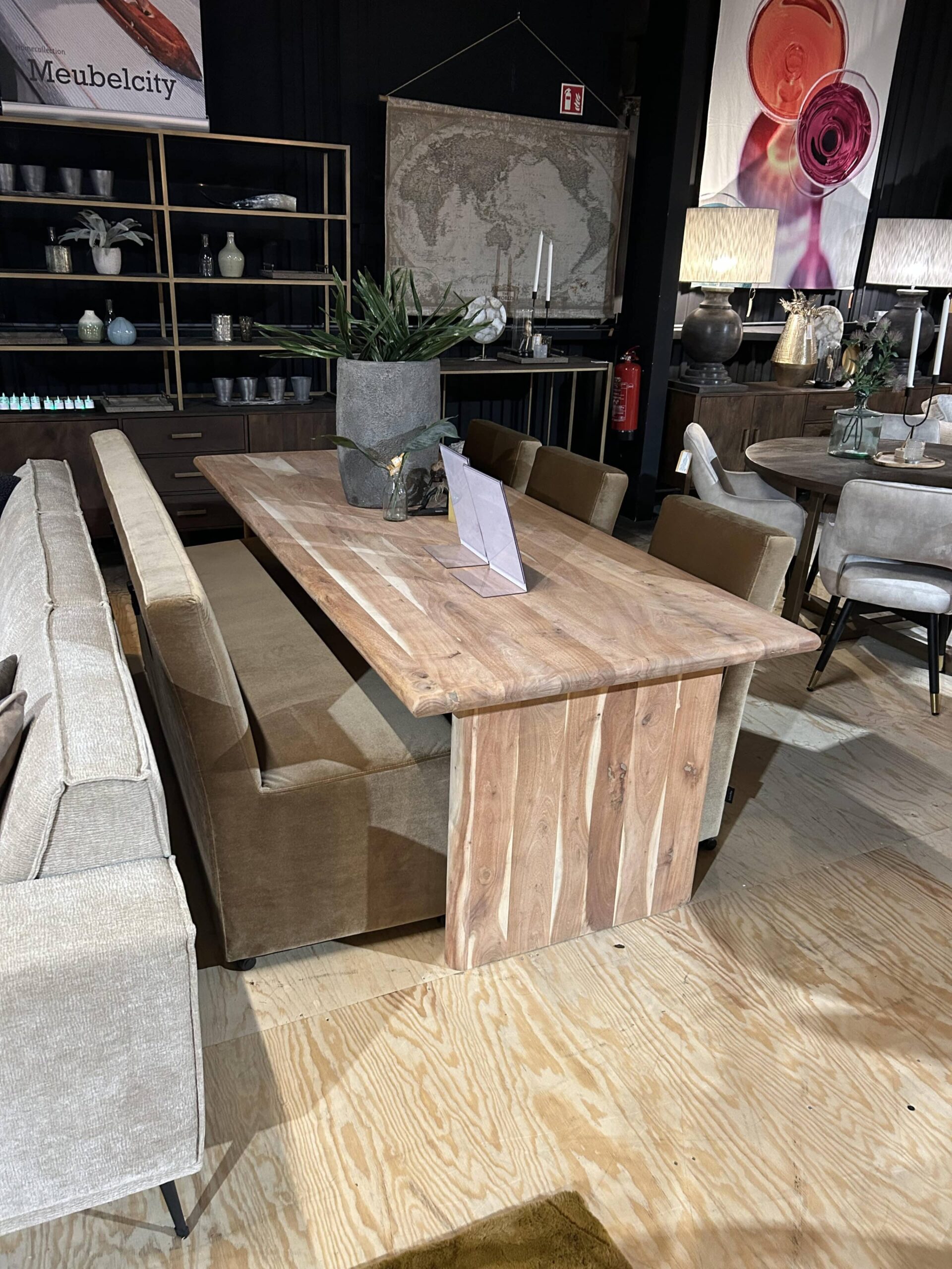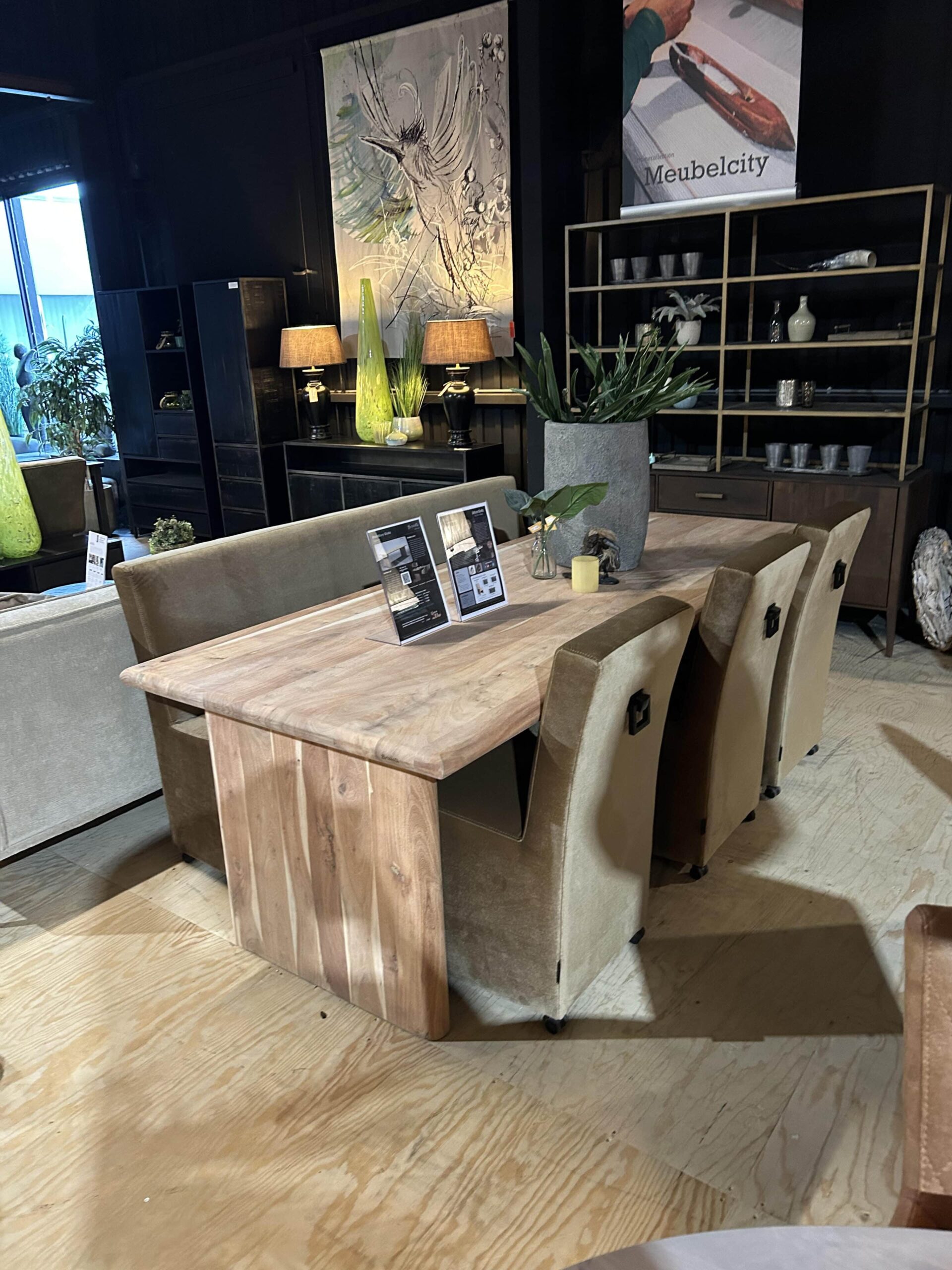 SHOWMODEL UrbanSofa eetkamerbank + 3 eetkamerstoelen Nice Catania Golden Sun