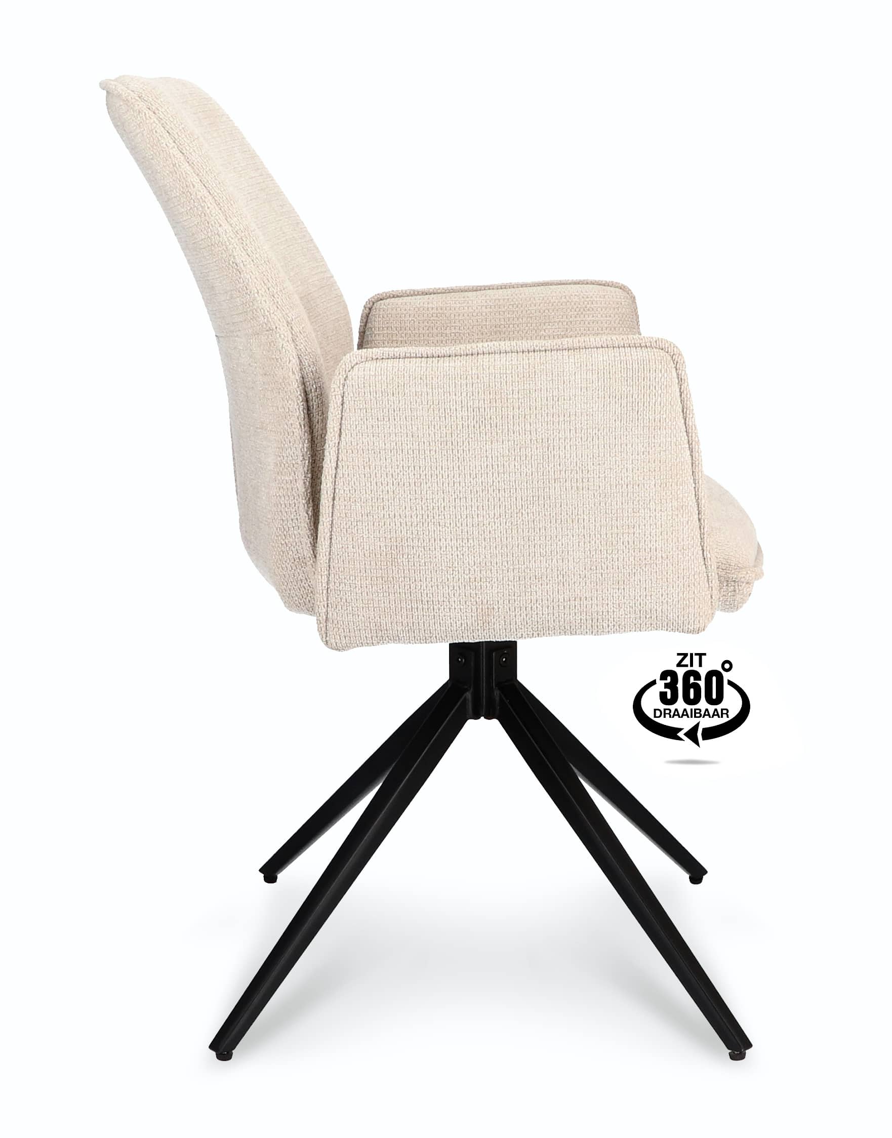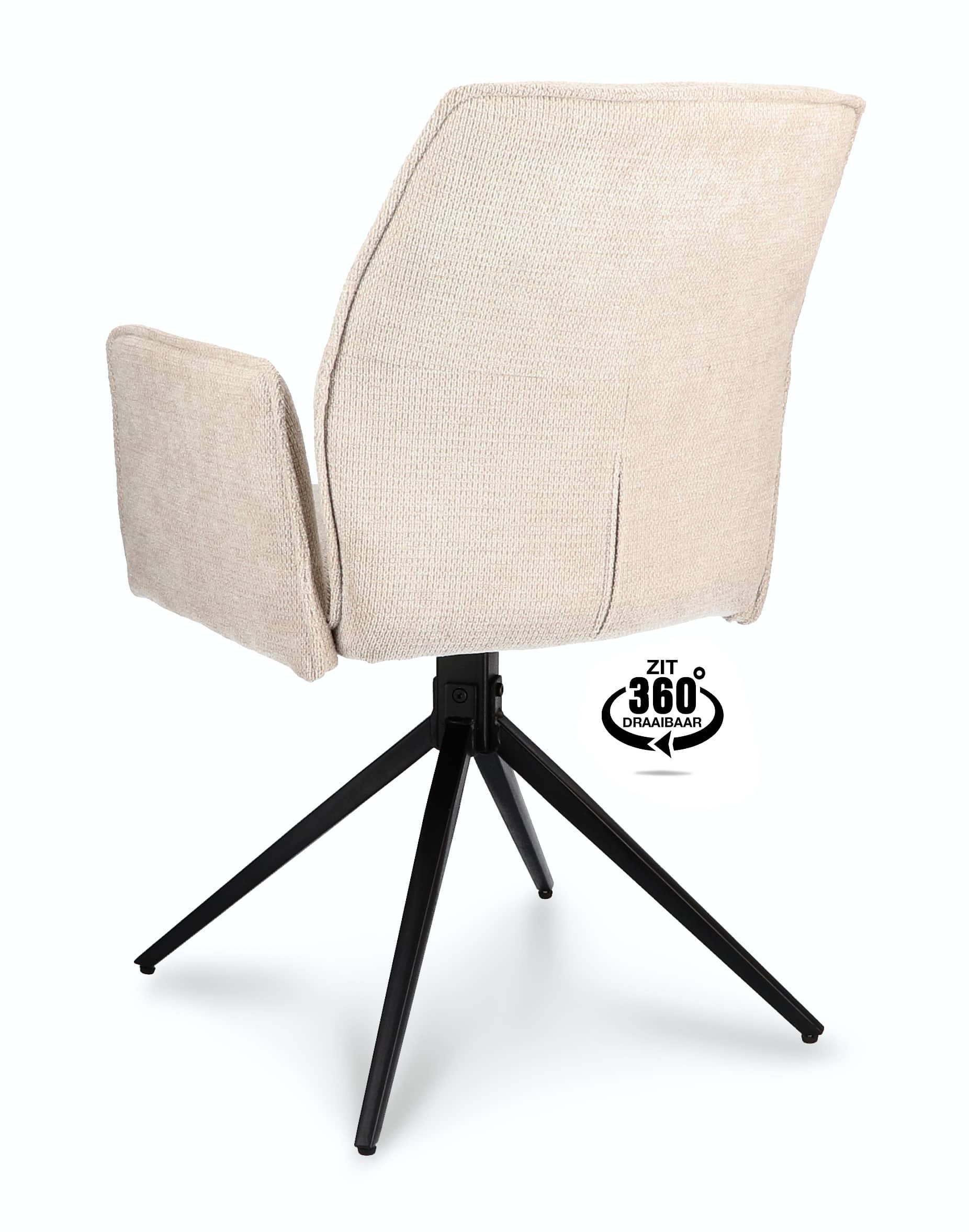 Wat deze stoel echt bijzonder maakt, is het 360 graden draaibare onderstel. Het metalen onderstel is stevig en duurzaam, en biedt de flexibiliteit om moeiteloos in elke richting te draaien. Of u nu de tafel verlaat of een gesprek voert, met de Harley eetkamerstoel geniet u van optimale bewegingsvrijheid zonder uw zitpositie aan te passen.
