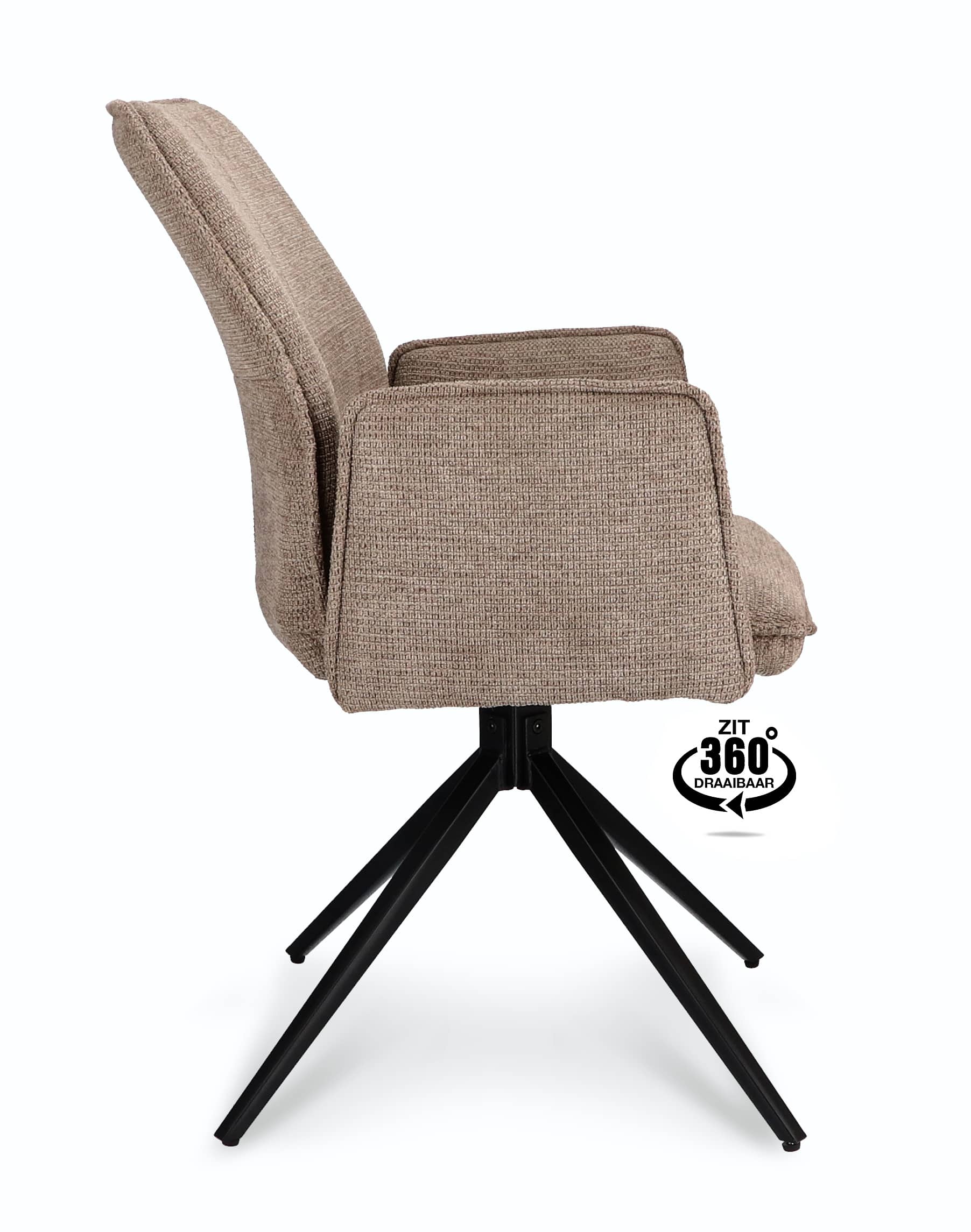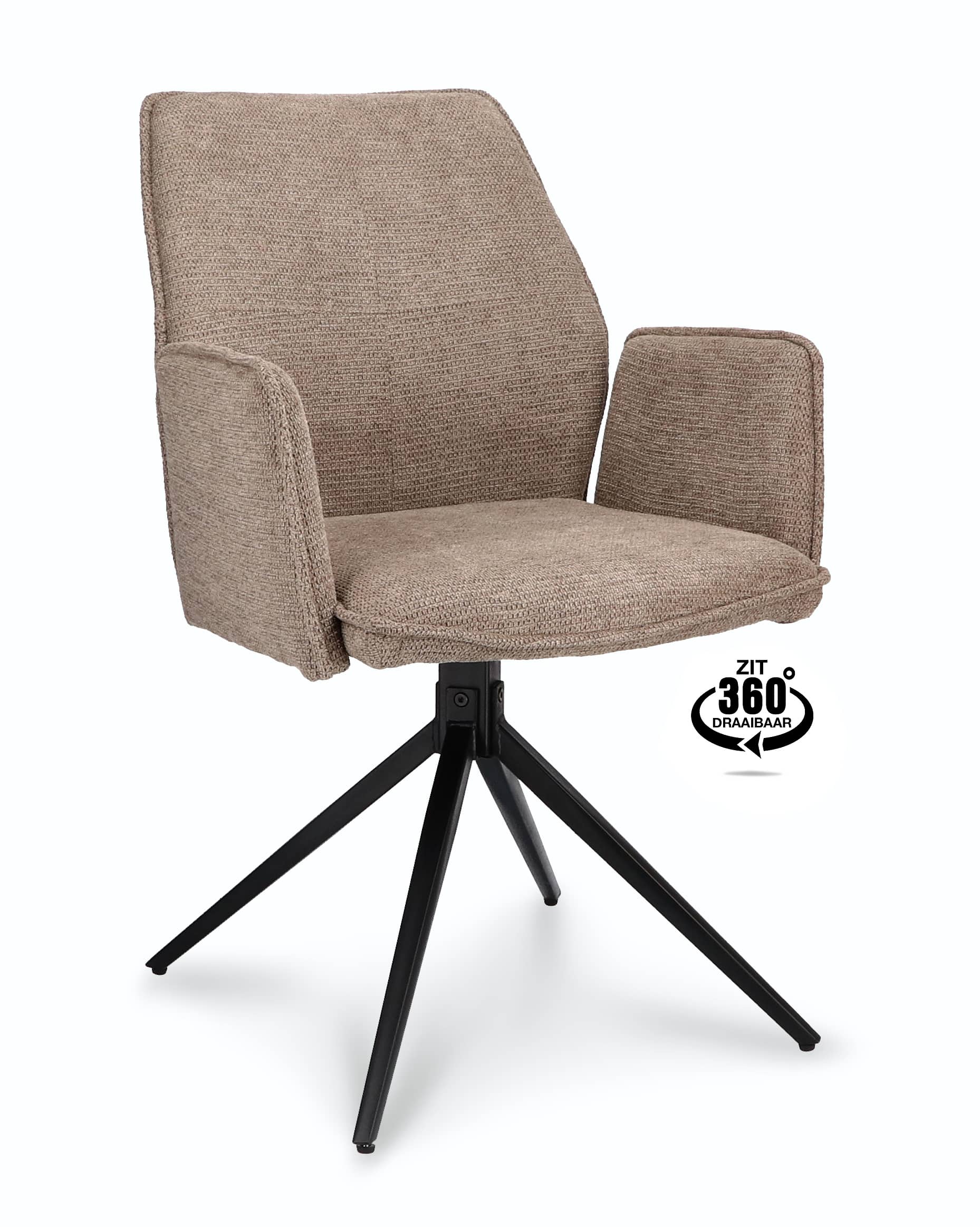 De eetkamerstoel Harley draaibaar met arm in taupe combineert stijl, comfort en functionaliteit in één prachtig meubelstuk. Voeg deze stoel toe aan uw eetkamer en geniet van de perfecte mix van elegantie en praktisch gebruiksgemak.