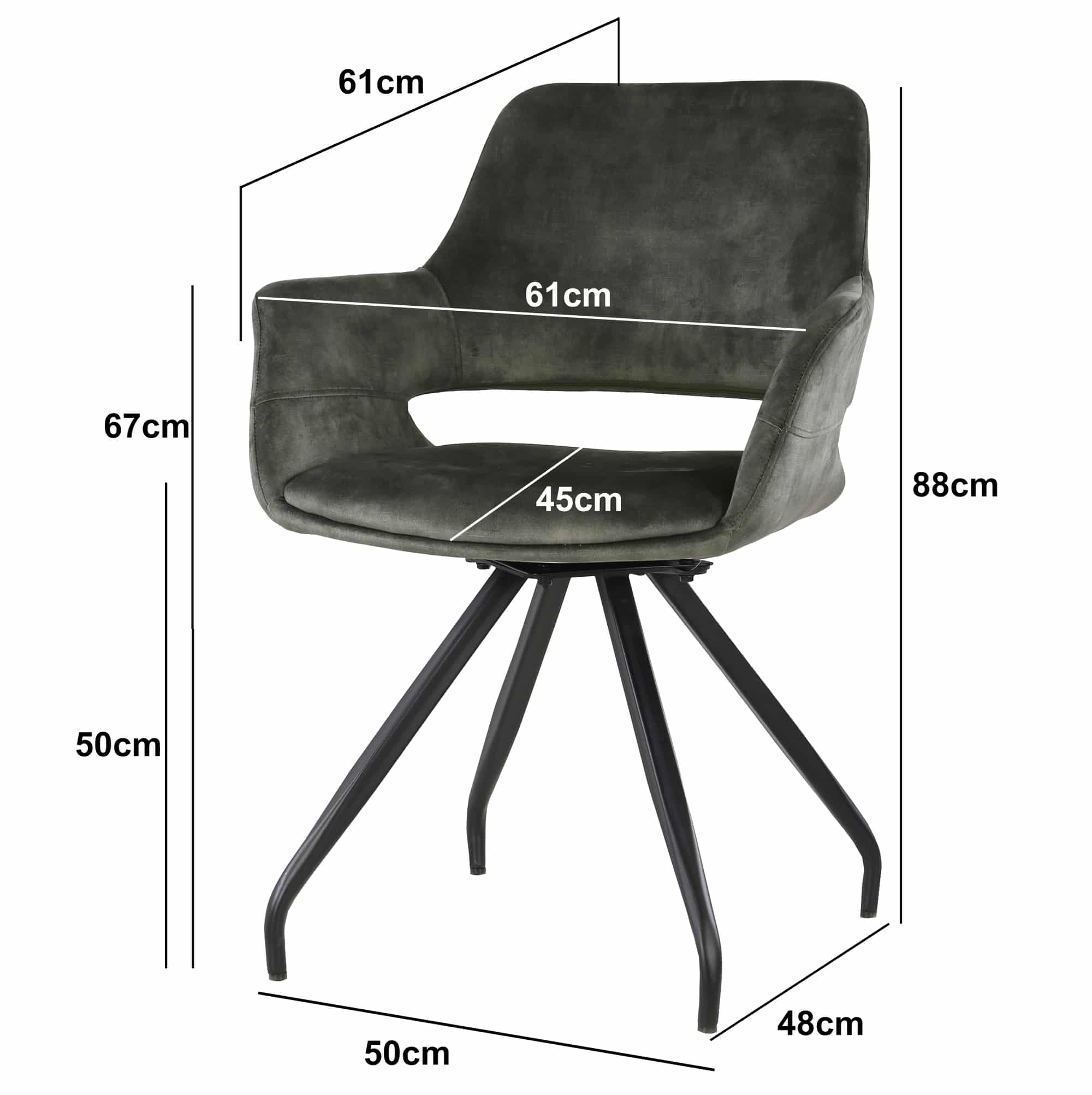 Livingfurn eetkamerstoel Capp draaibaar met arm Olive Velvet