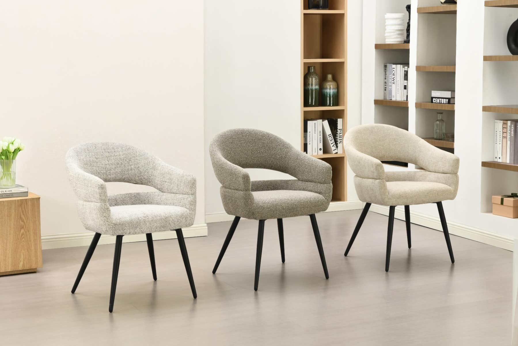 €179,00De Megan eetkamerstoel combineert een eigentijds ontwerp met ultiem zitcomfort. De opengewerkte rugleuning voegt een luchtig en stijlvol accent toe, terwijl de subtiele rondingen zorgen voor een elegante uitstraling. Dankzij de vaste zitting biedt Megan een stabiele en aangename zitervaring – perfect voor lange diners of gezellige momenten aan tafel. De slanke, taps toelopende poten geven de stoel een moderne flair die naadloos aansluit bij verschillende interieurstijlen. Megan is de perfecte keuze voor wie houdt van stijl, comfort en functionaliteit in één.
